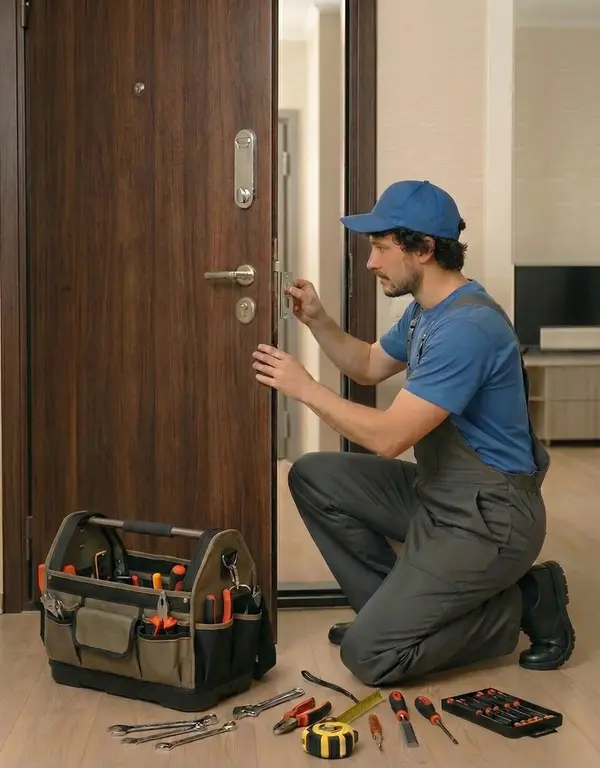 Мастер определит причину: перекос полотна, просевшие петли или смещённый язычок замка. Отрегулирует механизмы, и дверь снова будет закрываться легко и плотно.